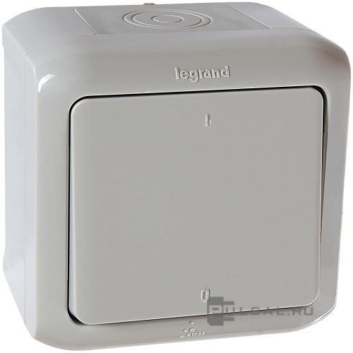Выключатель двухполюсный Quteo, одноклавишный, с возможностью подсветки, цвет - серый