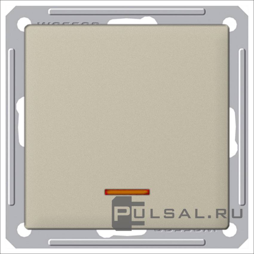 Выключатель двухполюсный 16А W59, одноклавишный, с подсветкой, цвет - шампань