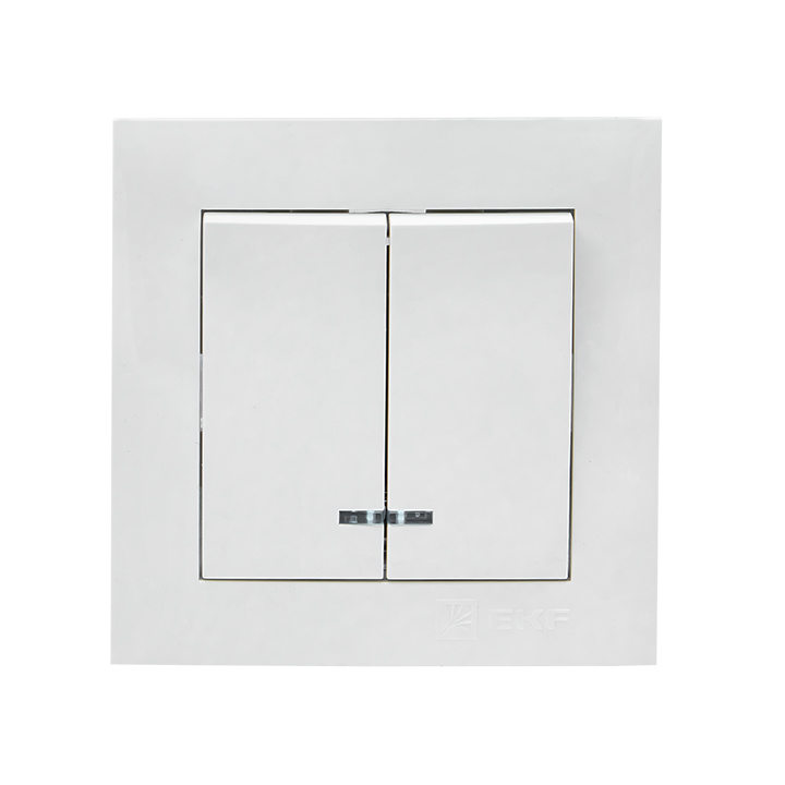 Выключатель Валенсия, двухклавишный, с индикацией, цвет - белый