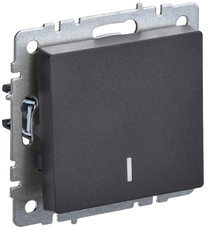 Выключатель BRITE, одноклавишный, с подсветкой, цвет - черный