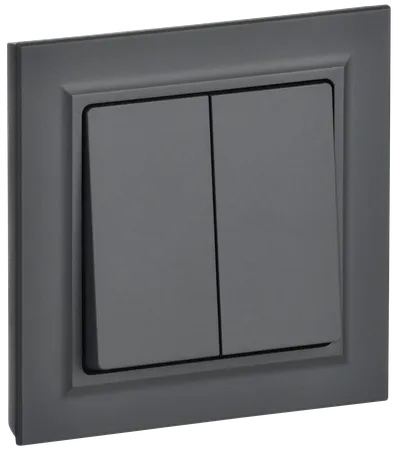 Выключатель с рамкой BRITE, двухклавишный, без подсветки, цвет - графит