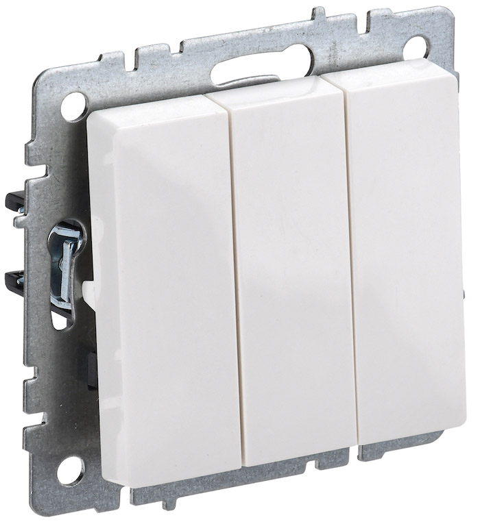 Выключатель BRITE, трехклавишный, без подсветки, цвет - белый