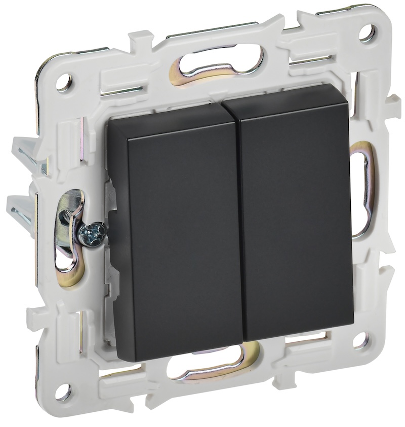 Выключатель Skandy, двухклавишный, без подсветки, цвет - черный