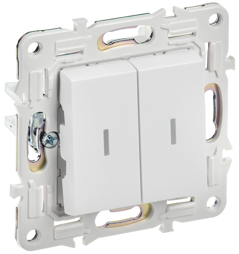 Выключатель Skandy, двухклавишный, с подсветкой, цвет - белый
