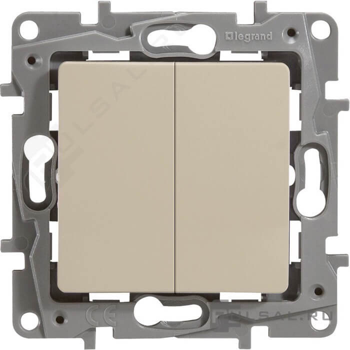 Переключатель Etika, двухклавишный, без подсветки, цвет - слоновая кость