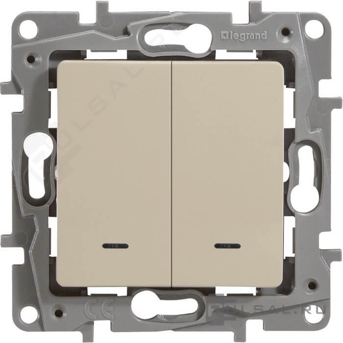 Переключатель Etika, двухклавишный, с подсветкой, цвет - слоновая кость