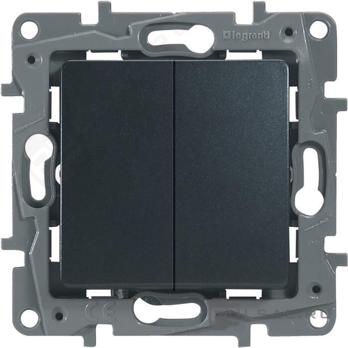 Выключатель Etika, двухклавишный, без подсветки, цвет - антрацит