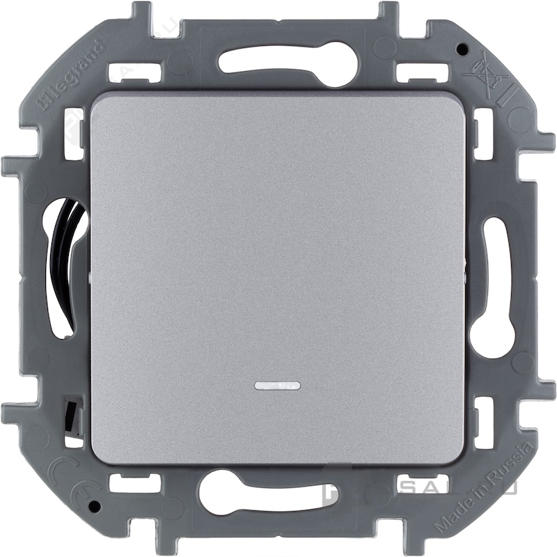 Выключатель Inspiria, одноклавишный, с подсветкой, с индикацией, цвет - алюминий