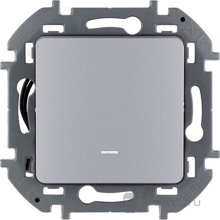 Переключатель Inspiria, одноклавишный, с подсветкой, с индикацией, цвет - алюминий
