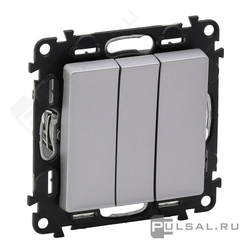 Выключатель Valena Life, трехклавишный, без подсветки, цвет - алюминий