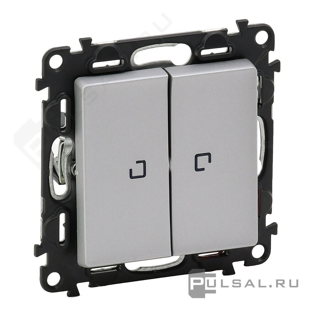 Выключатель Valena Life, двухклавишный, с подсветкой, цвет - алюминий