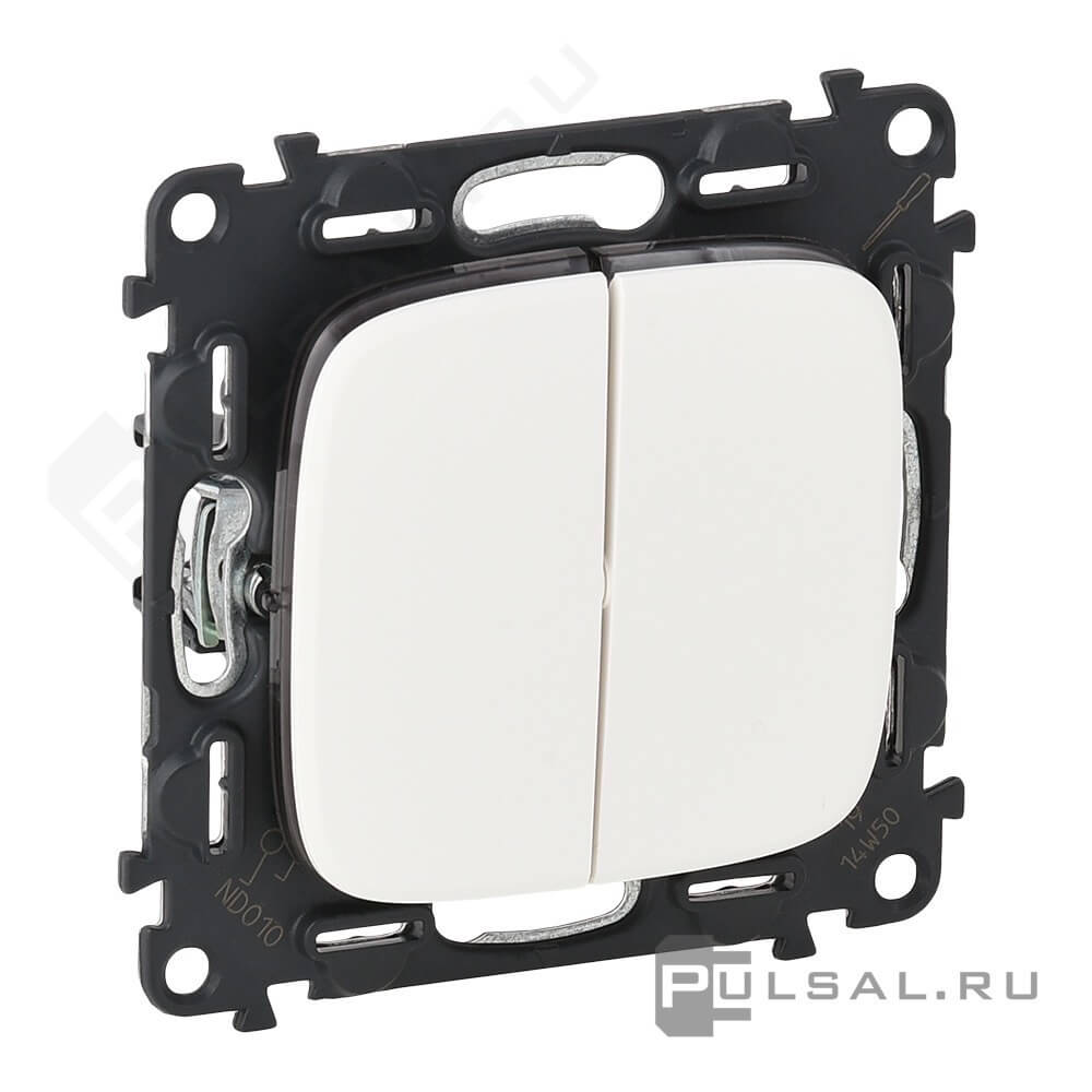 Переключатель Valena Allure, двухклавишный, без подсветки, цвет - белый
