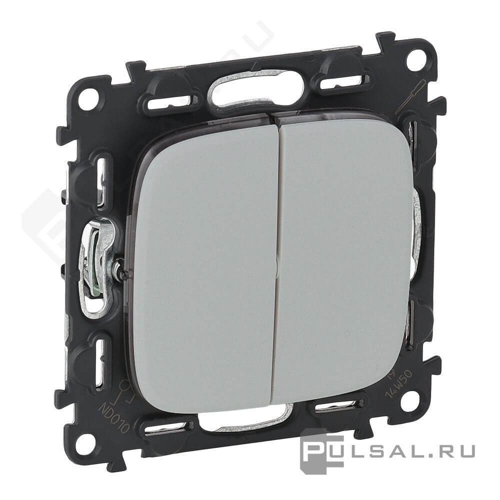 Переключатель Valena Allure, двухклавишный, без подсветки, цвет - алюминий