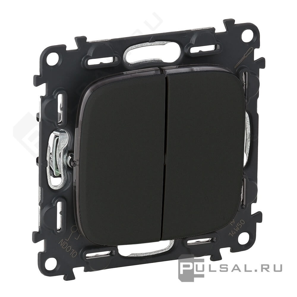 Переключатель Valena Allure, двухклавишный, без подсветки, цвет - матовый черный