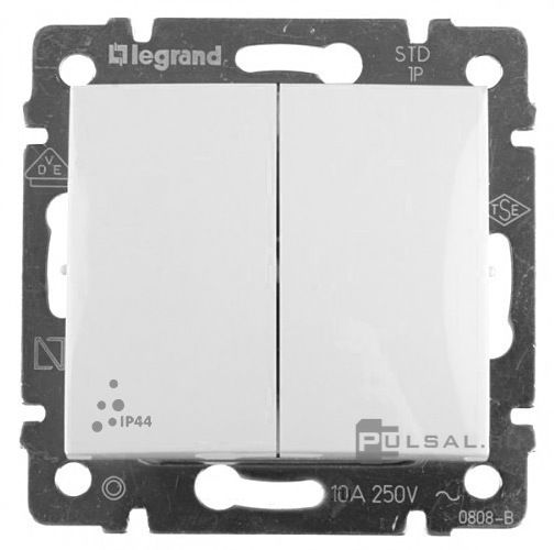 Переключатель Valena, двухклавишный, без подсветки, цвет - белый