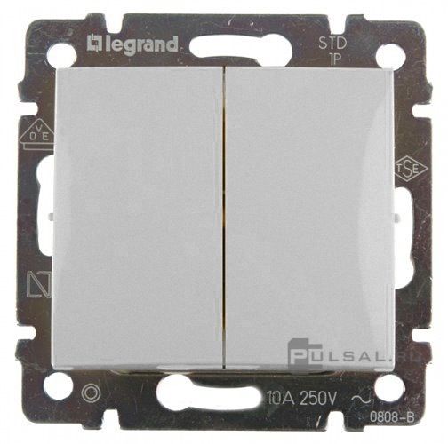 Переключатель Valena, двухклавишный, без подсветки, цвет - алюминий