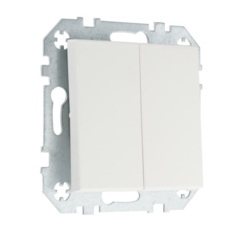 Выключатель Epsilon, Retro Liregus, двухклавишный, без подсветки, с возможностью подсветки, цвет - белый матовый