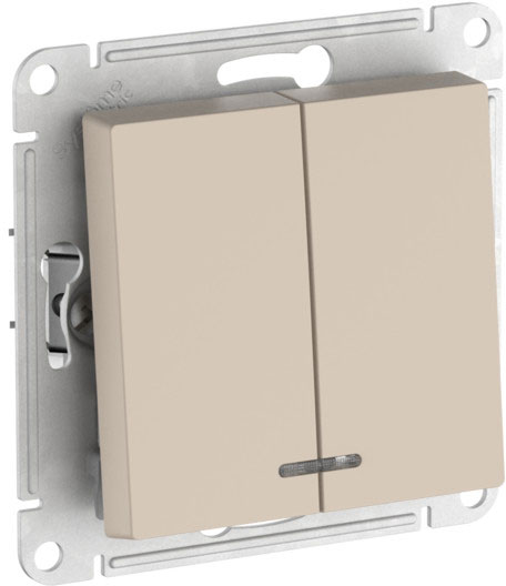 Выключатель (безвинтовые клеммы) Atlas Design Antique, AtlasDesign Air, Atlas Design, двухклавишный, с подсветкой, цвет - песочный