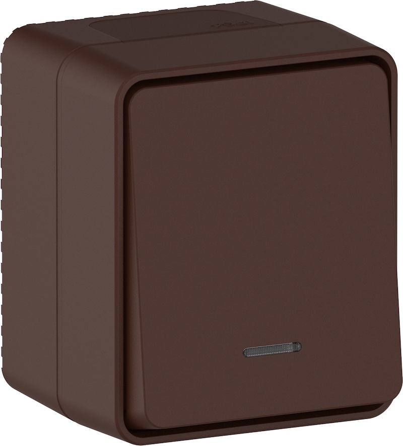Выключатель Atlas Design Profi 54, одноклавишный, с подсветкой, цвет - коричневый