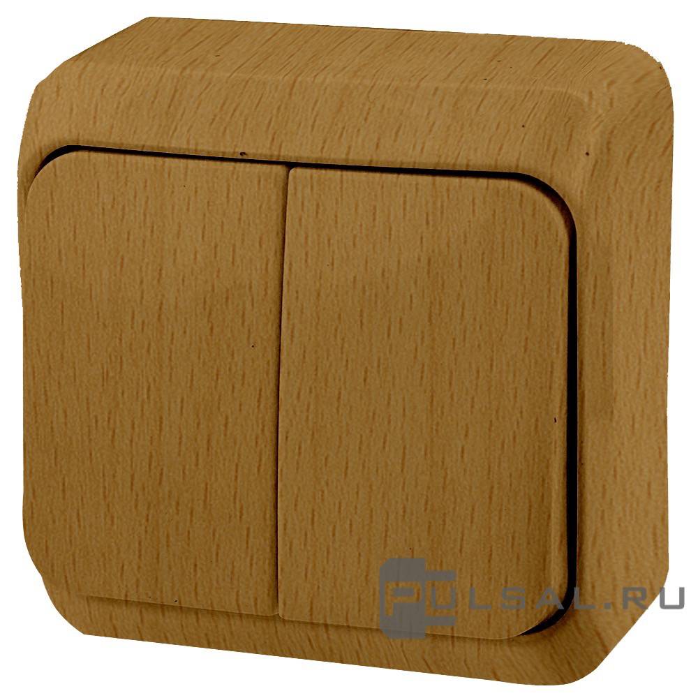 Выключатель Этюд, двухклавишный, без подсветки, цвет - бук
