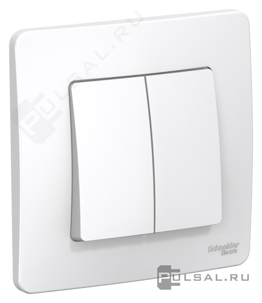 Выключатель 10 А Blanca, двухклавишный, без подсветки, цвет - белый