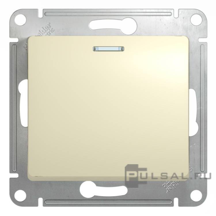 Выключатель Glossa, одноклавишный, с подсветкой, цвет - бежевый