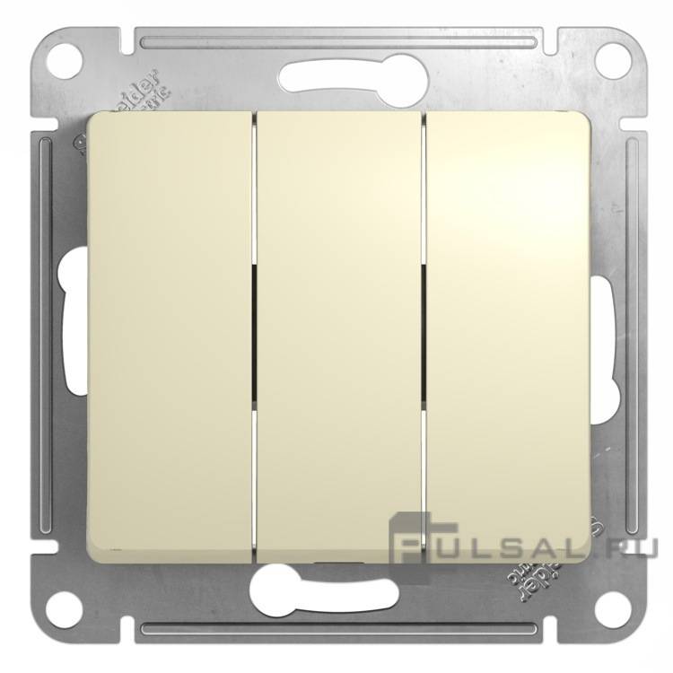 Выключатель Glossa, трехклавишный, без подсветки, цвет - бежевый