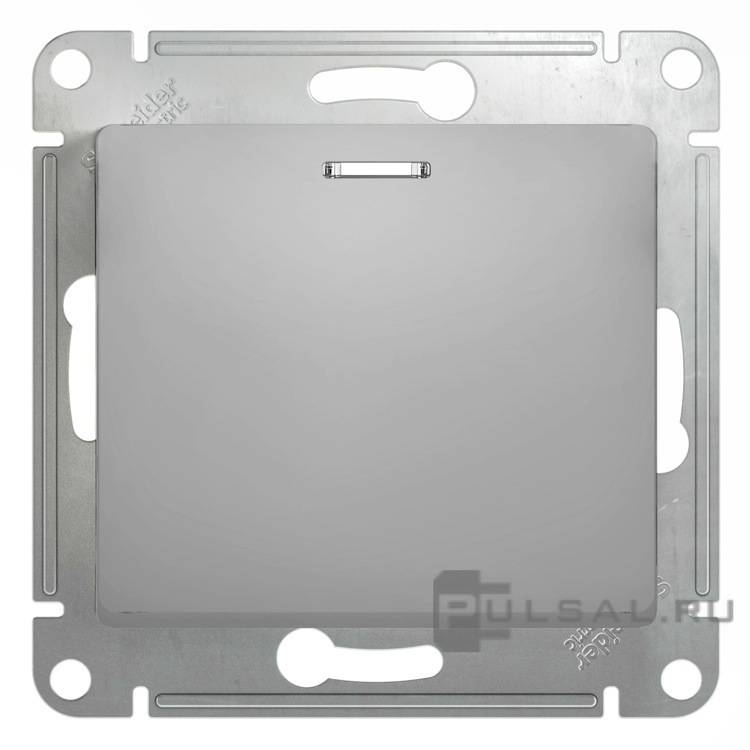Выключатель Glossa, одноклавишный, с подсветкой, цвет - алюминий