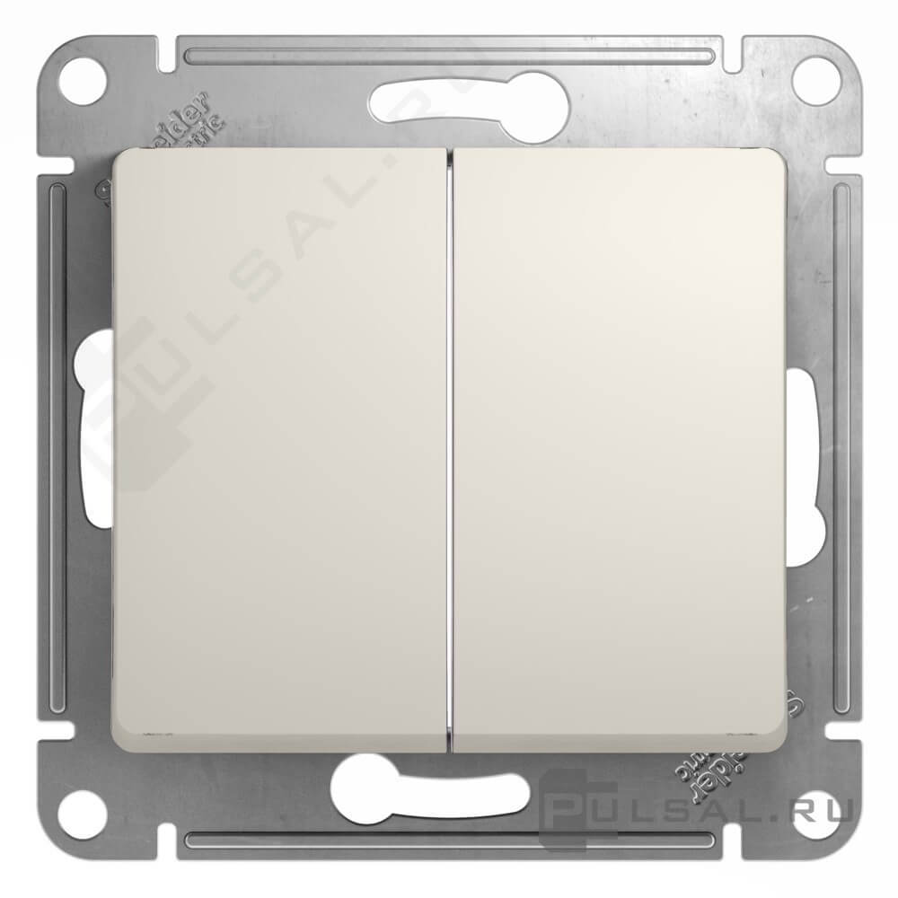 Переключатель Glossa, двухклавишный, без подсветки, цвет - молочный