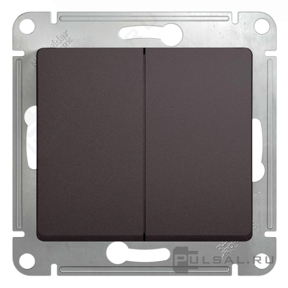 Выключатель Glossa, двухклавишный, без подсветки, цвет - графит