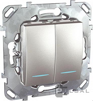 Выключатель Unica Quadro, Unica Top, Unica Class, двухклавишный, с подсветкой, цвет - алюминий
