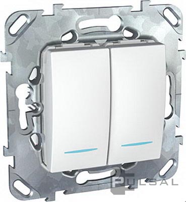 Переключатель Unica Базовая, Unica Хамелеон, Unica Quadro, двухклавишный, с подсветкой, цвет - белый