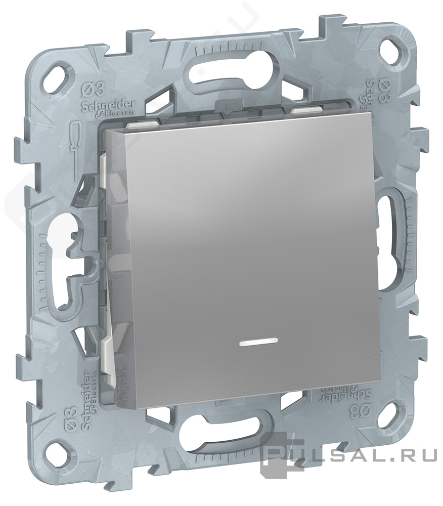 Переключатель Unica New Pure, Unica New Studio, одноклавишный, с подсветкой, цвет - алюминий