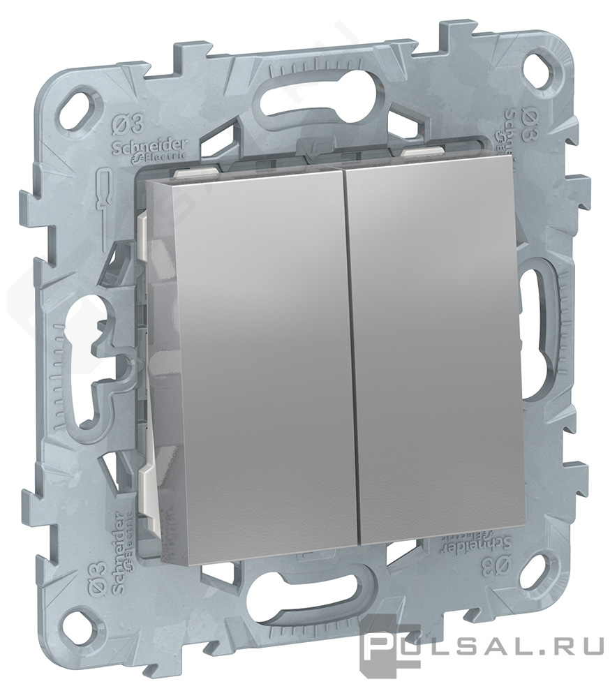 Выключатель Unica New Pure, Unica New Studio, двухклавишный, без подсветки, цвет - алюминий