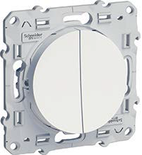Переключатель Odace, двухклавишный, без подсветки, с возможностью подсветки, цвет - белый