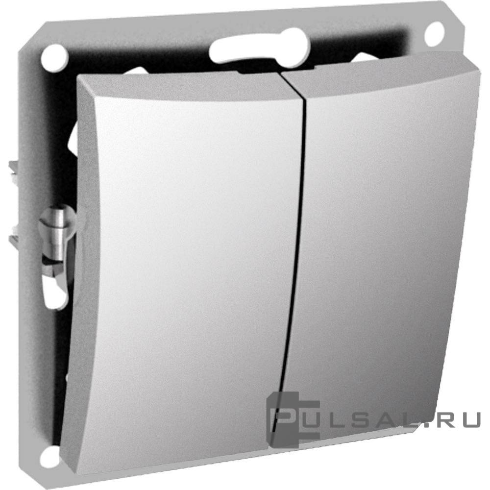 Выключатель Дуэт, двухклавишный, с подсветкой, цвет - серебристый