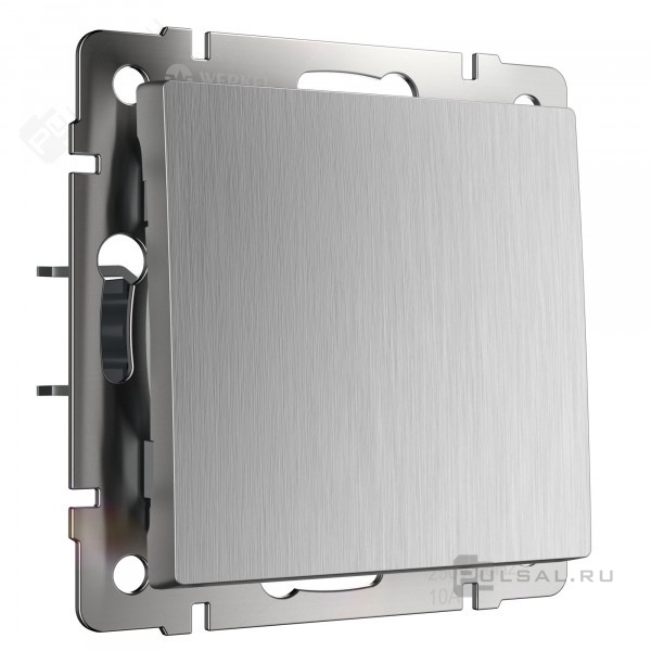 Выключатель Alumax, Split, Slab, Senso, Baguette, Acrylic, Platinum, Elite, Snabb, Stream, Flock, Stark, Fiore, Favorit, Diamant, Aluminium, Antik, Metallic, одноклавишный, без подсветки, цвет - серебряный рифленый