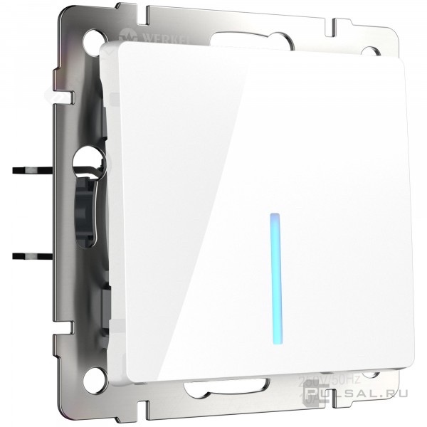 Выключатель Alumax, Split, Slab, Senso, Baguette, Acrylic, Platinum, Elite, Snabb, Stream, Flock, Stark, Fiore, Favorit, Diamant, Aluminium, Antik, Metallic, одноклавишный, с подсветкой, цвет - белый