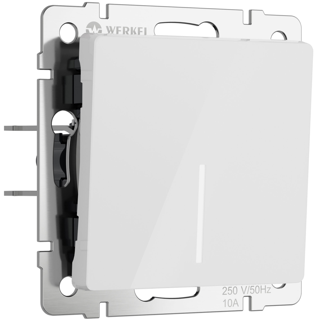Выключатель Alumax, Split, Slab, Senso, Baguette, Acrylic, Platinum, Elite, Snabb, Stream, Flock, Stark, Fiore, Favorit, Diamant, Aluminium, Antik, Metallic, одноклавишный, с подсветкой, цвет - белый акрил