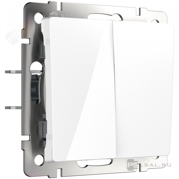 Выключатель Alumax, Split, Slab, Senso, Baguette, Acrylic, Platinum, Elite, Snabb, Stream, Flock, Stark, Fiore, Favorit, Diamant, Aluminium, Antik, Metallic, двухклавишный, без подсветки, цвет - белый