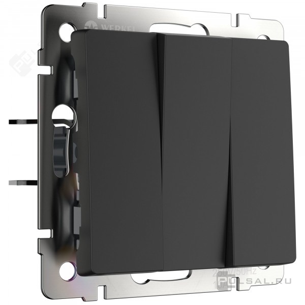 Выключатель Alumax, Split, Slab, Senso, Baguette, Acrylic, Platinum, Elite, Snabb, Stream, Flock, Stark, Fiore, Favorit, Diamant, Aluminium, Antik, Metallic, трехклавишный, без подсветки, цвет - черный