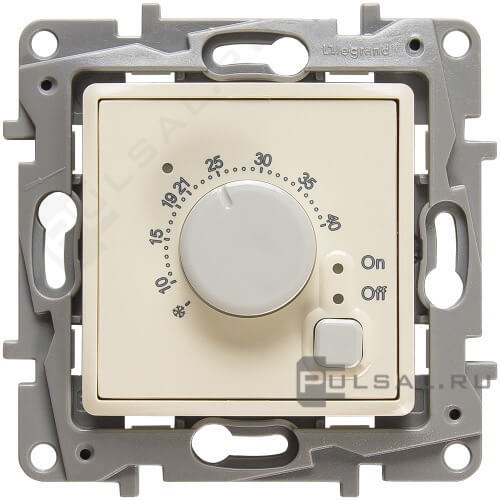 Терморегулятор 16А, НО-контакт, 230В Living Now, Etika, поворотный, датчик t° пола (внешний), без таймера, цвет - слоновая кость