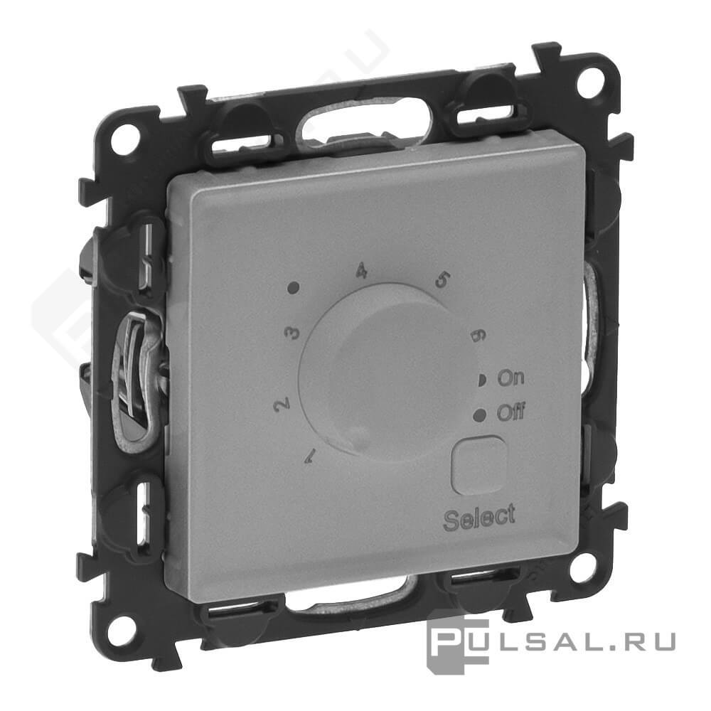 Терморегулятор 16А, НО-контакт, 230В Valena Life, поворотный, датчик t° пола (внешний), без таймера, цвет - алюминий