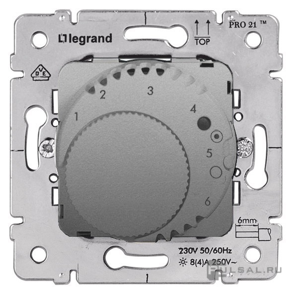 Терморегулятор 16А, НО-контакт, 230В Galea Life, поворотный, датчик t° пола (внешний), без таймера, цвет - алюминий