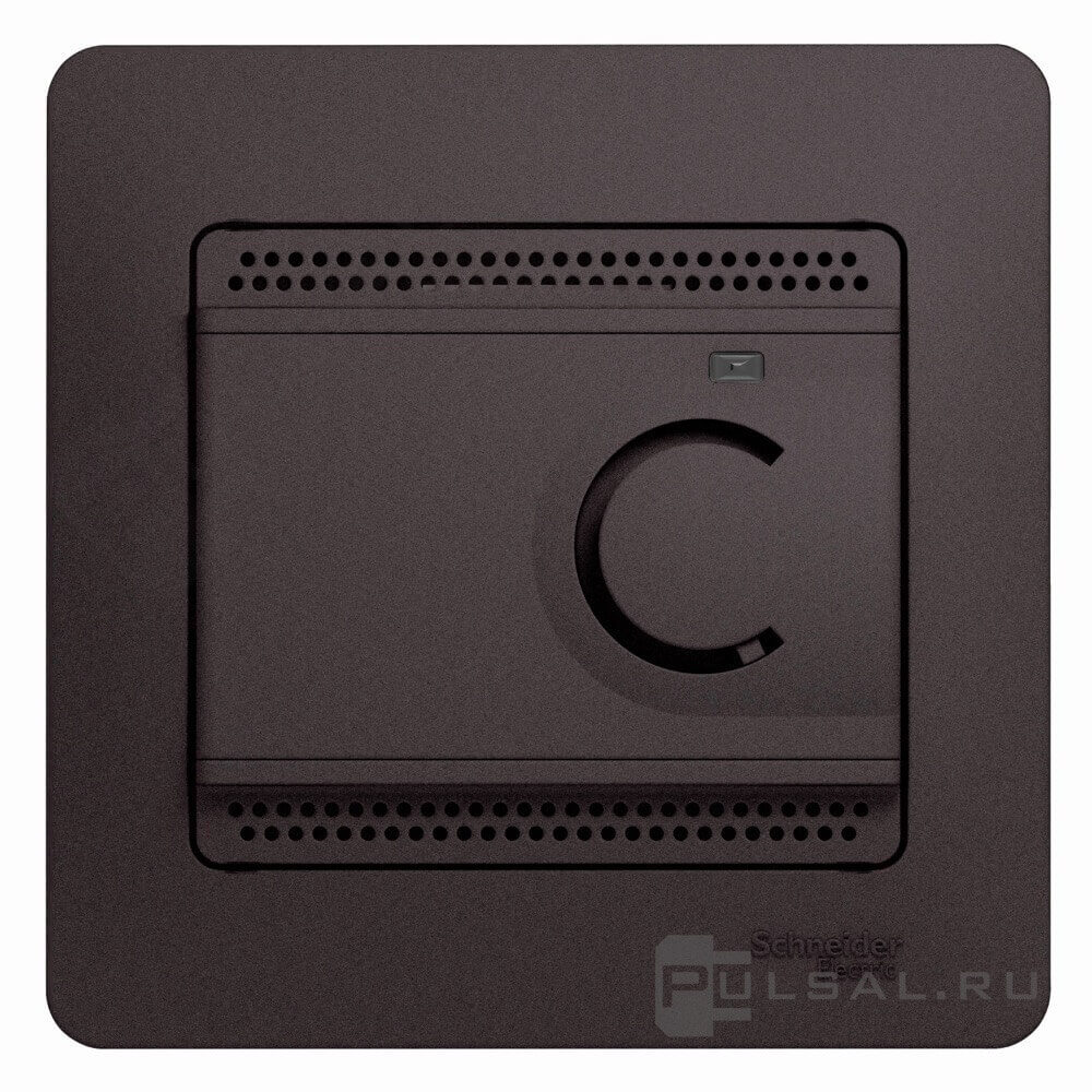 Терморегулятор 10А, НО-контакт, 230В Glossa, поворотный, датчик t° пола (внешний), без таймера, цвет - графит