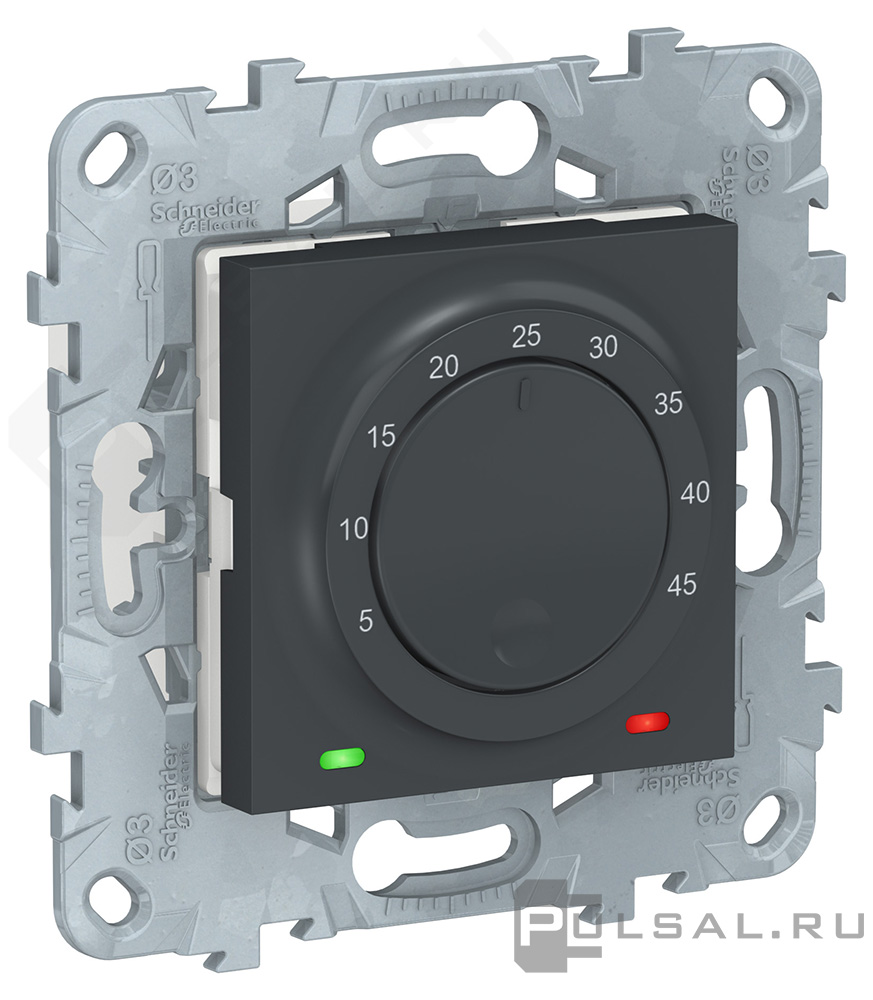Терморегулятор 10А, НО-контакт, 230В Unica New Pure, Unica New Studio, поворотный, датчик t° пола (внешний), без таймера, цвет - антрацит