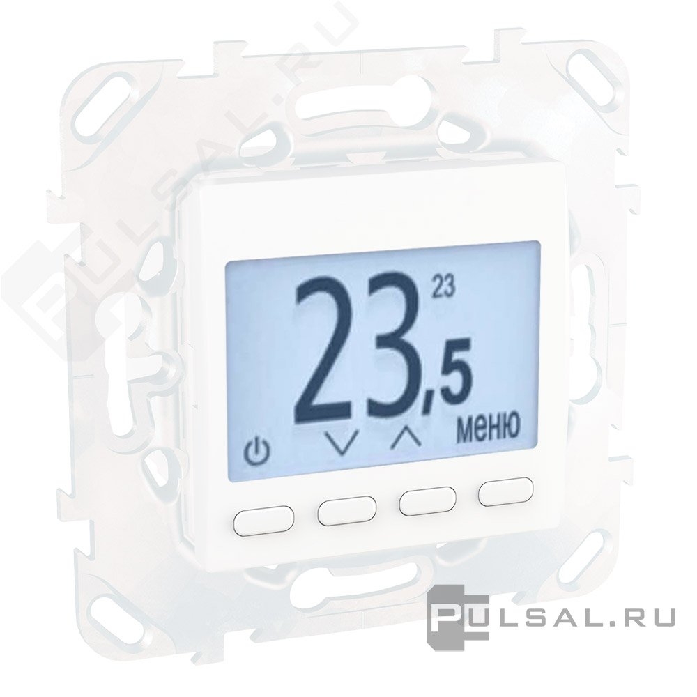 Терморегулятор 16А, НО-контакт, 230В Unica Базовая, Unica Хамелеон, Unica Quadro, Unica New Pure, Unica New Studio, клавишный, датчик t° воздуха (встроенный), датчик t° пола (внешний), с таймером, цвет - белый