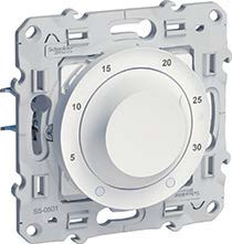 Терморегулятор 10А, НО-контакт, 230В Odace, поворотный, датчик t° пола (внешний), без таймера, цвет - белый