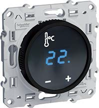 Терморегулятор 10А, НО-контакт, 230В Odace, сенсорный, датчик t° пола (внешний), без таймера, цвет - черный