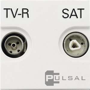 Розетка проходная Zenit, телевизионная (TV), спутниковая (SAT), радио (R), двойная, цвет - белый